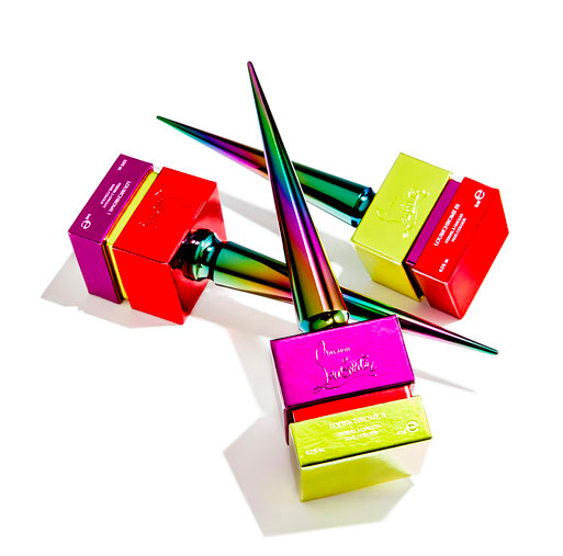 Loubichrome I is described as an energetic yellow infused with lime green. Loubichrome II is called a fiery rose red. And Loubichrome III is perfectly detailed as a glistening violet shade.