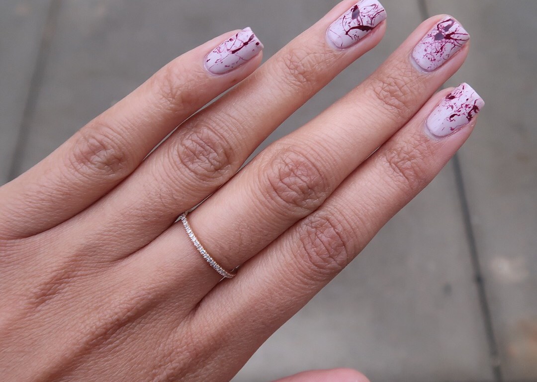 But these days my Halloween spirit has just been represented through my nails. I created the look below using OPI’s ‘Don’t Bossa Nova Me Around’ as the base and Essie’s ‘Bahama Mama’ as the splatter to simulate blood. To get the splatter effect see the tutorial I did here. Pretty cool, right?! And on my thumbs I just used a thin brush to make the appearance of cuts in the flesh.